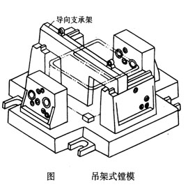 但是在加工箱體內(nèi)部間壁上的孔時,由于開口朝上,因此為提高刀具系統(tǒng)剛度而設(shè)置的中間導(dǎo)向支承吊架只能懸掛在夾具上面,如圖所示,
