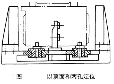由于懸掛的支面吊架剛度較差,又有安裝誤差。因此影響加工精度的的高,此外操作麻煩,所需輔助時間長,這對大批大量生產(chǎn)業(yè)說不合適的。選擇頂面R和它上面的兩個銷孱為定位基準(zhǔn)采用這種定位方式安裝是地,主軸箱箱口朝下,如圖所示