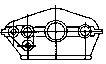 單級(jí)三環(huán)傳動(dòng),二高速軸位于低速軸兩側(cè),各軸豎置,箱體平置座裝。 |