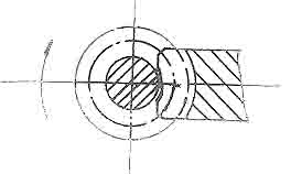 蝸輪蝸桿接觸面積是蝸輪減速機(jī)質(zhì)量的綜合反映。以前裝配工靠手盤動(dòng)減速機(jī)的感覺來判定裝配是否到位,不能正確判斷蝸輪蝸桿的接觸面積及位置,F(xiàn)建立試車臺(tái),將裝配好的蝸輪減速機(jī)的蝸桿涂上紅丹,在試車臺(tái)上運(yùn)轉(zhuǎn),觀察接觸斑點(diǎn)位置,根據(jù)接觸斑點(diǎn)位置來調(diào)整蝸輪位置。要求接觸斑點(diǎn)位置稍偏于嚙出側(cè),使入口形成油楔(見圖1),然后進(jìn)行跑合。
