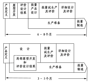 產(chǎn)品開發(fā)是一個(gè)從市場獲得需求信息,據(jù)此構(gòu)思產(chǎn)品開發(fā)方案,最終形成產(chǎn)品投放市場的過程。雖然在產(chǎn)品開發(fā)過程中并非所有步驟都可以平行進(jìn)行,但根據(jù)對產(chǎn)品開發(fā)過程的信息流分析,可以通過一些工作步聚的平行交叉,大大縮短產(chǎn)品開發(fā)時(shí)間。例如:日本NEC公司將某種產(chǎn)品原本歷時(shí)6--8個(gè)月的開發(fā)過程,通過并行重組縮短為3個(gè)半月,如圖1。