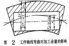 工件有些形狀和位置偏差不包括在尺寸公差的范圍內(nèi),但這些誤差又必須在本工序的加工中糾正,在本工序的加工余量中必須包括它。如圖2所示軸類零件,由于上工序軸線有直線度誤差δ,本工序加工余量必須相應(yīng)增加2δ.屬于這一類偏差的有直線度、位置度、同軸度、平行度及軸線與端面的垂直度等。