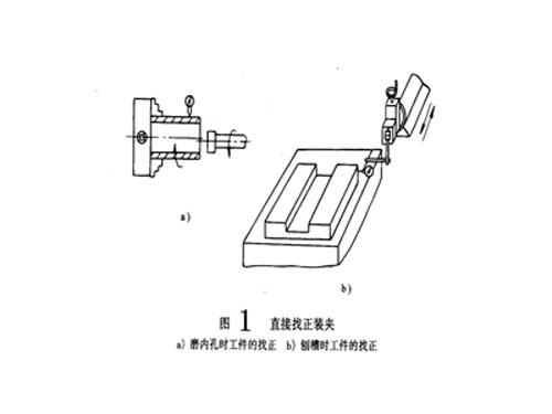 此法是用百分表、劃線盤或目測直執(zhí)著在機(jī)床上找正工件位置的裝夾方法,如圖1