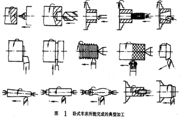 CA6140型臥床的工藝范圍很廣,它適用于加工各種軸類、套筒類和盤類零件上的回轉(zhuǎn)表面,如車削內(nèi)外圓柱面、圓錐面、環(huán)槽及成形回轉(zhuǎn)面;車削端面及各種常用螺紋;還可以進行鉆孔、擴孔、鉸孔、滾花、攻螺紋和套螺紋等工作圖1