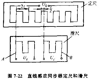 1)感應(yīng)同步器的工作原理,感應(yīng)同步器是一種電磁式的高精度位移檢測(cè)元件、按其結(jié)構(gòu)方式的不同可分為直線式和旋轉(zhuǎn)式兩種,前者用于長(zhǎng)度測(cè)量,后者用于角度測(cè)量、感應(yīng)同步器是利用電磁耦合原理,將位移或轉(zhuǎn)角轉(zhuǎn)變?yōu)殡娦盘?hào),借以進(jìn)行位置檢測(cè)和反饋控制,在數(shù)控機(jī)床上使用極為普遍。直線感應(yīng)同步器中有定尺和滑尺兩部分(見圖7-22)。