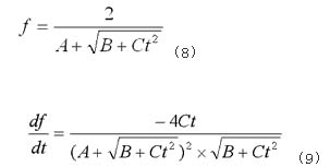 對于減速階段,按照與上述類似的分析方法,可以得出脈沖頻率特性的表達方式為: