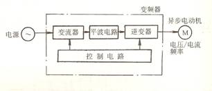 異步電動(dòng)機(jī)用變頻器傳動(dòng)時(shí)的框圖如圖1所示,整流器將交流電變?yōu)橹绷麟,平波回路將直流電平衡,逆變器將直流電逆變(yōu)轭l率可調(diào)的交流電。為了電動(dòng)機(jī)的調(diào)速傳動(dòng)所給出的操作量有電壓、電流、頻率。