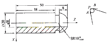 以A、B 點(diǎn)對(duì)刀,并在相應(yīng)方向使刀具增加位移量:(偏刀類)X =2r,Z =r,或(尖刀類)X =2r,Z =0;