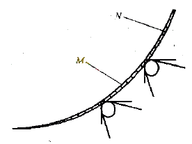 誤差分析在數(shù)控車床使用過程中,為了降低被加工工件表面的粗糙度,減緩刀具磨損,提高刀具壽命,通常將車刀刀尖刃磨成圓弧,圓弧半徑一般在0.4~1.6mm之間。如圖1所示,采用試切法對(duì)刀時(shí)由A、B兩點(diǎn)分別確定刀架中心的X、Z位置。這樣,加工程序所描述的刀位點(diǎn)是P點(diǎn),數(shù)控系統(tǒng)將控制P點(diǎn)的運(yùn)動(dòng)軌跡,而在切削時(shí)實(shí)際起作用的切削刃則是刀尖圓弧上的各切點(diǎn),這勢(shì)必會(huì)產(chǎn)生加工表面的形狀誤差。在車削外圓、內(nèi)孔及端面時(shí),這個(gè)誤差為零。而在加工弧面和錐面時(shí),這個(gè)誤差就很明顯。圖1零件SR10-0.04球面加工的誤差分析見圖2。圖中M線為加工程序所描述的P 的軌跡,即工件的理想尺寸,而實(shí)際加工后的輪廓是N線,陰影就是少切削部分,即加工誤差。假設(shè)刀尖圓弧半徑為r=0.4mm,理論分析表明,N線是半徑為R-r=9.6的圓弧,M、N兩圓弧圓心X、Z向均相距r=0.4mm,最大誤差約為0.17mm,不滿足精度要求。