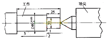 中拖板絲杠副間隙是必然存在的,對(duì)普通車床來說,間隙較大;對(duì)數(shù)控車床而言,由于采用的是滾珠絲杠副,并且都進(jìn)行了預(yù)緊,從理論上講,是達(dá)到了零間隙,無反向空程。實(shí)際上,對(duì)于有相對(duì)運(yùn)動(dòng)的傳動(dòng)部件,間隙是不可避免的。對(duì)高精度的滾珠絲杠副而言,只是間隙非常微小;如果真正達(dá)到零間隙,運(yùn)行的阻力就會(huì)增大。因而,在絲杠反向運(yùn)動(dòng)時(shí),還是存在微小的空程,這個(gè)空程就足夠影響加工精度。在加工軸類零件時(shí),一般的加工路線如圖3所示,通常是通過下面一段程序來進(jìn)行的: