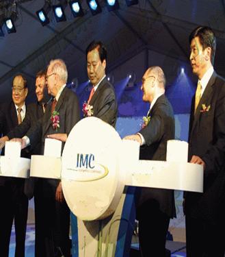巴菲特同IMC集團(tuán)及大連市領(lǐng)導(dǎo)為IMC大連新工廠開(kāi)業(yè)慶典啟動(dòng)按鈕 |
