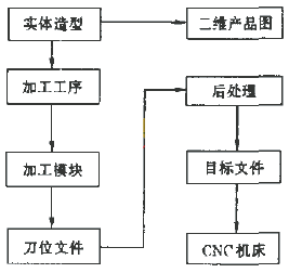 加工工序設計完成后,加工模塊根據(jù)需要加工的內容安排加工路線,并按設計的工序進行仿真加工;確定加工工序正確無誤后,即可生成加工該刀具的刀位文件;然后選擇所用機床的后處理程序對刀位文件進行后處理,生成機床加工用的目標文件(G代碼文件);最后還需對該文件進行編輯,去掉仿真過程中一些不必要的語句,生成最終的加工程序。