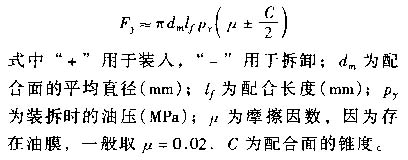 當(dāng)進(jìn)入的高壓油的油壓達(dá)到一定數(shù)值時,配合面間的壓力將使包容件內(nèi)徑脹大,被包容件外徑減少,從而配合表面被一層高壓油膜分開。此時以適當(dāng)方法施加一定的軸向力,即可實現(xiàn)過盈配合的裝、拆。