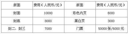 標(biāo)準(zhǔn)展位 國內(nèi)企業(yè):3M×3M 5200人民幣(主通道兩側(cè)加價(jià)20%) 國外企業(yè):3M×3M 1800美元(主通道兩側(cè)加價(jià)20%) 標(biāo)準(zhǔn)展位配備: 三面展板、楣板、一張洽談桌、兩把折疊椅、兩只射燈、廢紙簍及5A 電源插座各一個(gè)。 室內(nèi)光地 國內(nèi)企業(yè):500元/平方米 (不少于36平方米,主通道兩側(cè)加價(jià)20%) 國外企業(yè) :180美元/平方米 (不少于36平方米,主通道兩側(cè)加價(jià)20%) 注:展臺(tái)特別裝修,特裝管理費(fèi)由參展商自理 研討會(huì)及會(huì)刊廣告:
