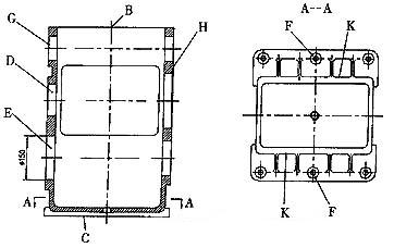 以刀庫中的鉆頭為校正工具,并使主軸以1000r/min的速度旋轉(zhuǎn),在兩側(cè)F面水平基準(zhǔn)線起止處鉆頭微切工件表面進(jìn)行試切,根據(jù)試切點(diǎn)與基準(zhǔn)線的相對(duì)位置,確定工件左右中心線是否在同一水平上,校正號(hào)工件F面兩側(cè)水平后,工作臺(tái)旋轉(zhuǎn)90°位置,采用同樣的方法校正工件B、C兩面基準(zhǔn)線。最后移動(dòng)Z軸,校正工件H面中心基準(zhǔn)線,看劃的線是否在中心上,如果不在,松或緊夾具上的調(diào)整螺栓5,微調(diào)工件位置,直到校正為止。各基準(zhǔn)線均校正好后,用壓板1將工件壓緊。