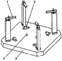 1.壓板 2墊板 3.定位銷 4.底板圖3 工序2專用夾具