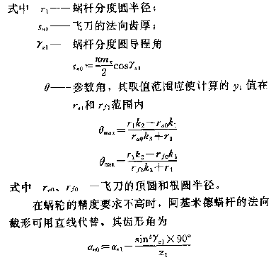 當阿基米德蝸桿的導程角yz1=≤5°時,則飛刀的前刃面可安裝在刀桿的軸向截面內(nèi),其飛刀的齒形為直線,齒形角等于蝸桿的軸向齒形角。如果蝸桿的導程角較大,為了改善飛刀兩側(cè)切削刃的工作條件,可采用阿基米德法向飛刀,其齒形應是阿基米德蝸桿的法向截形相同的曲線。