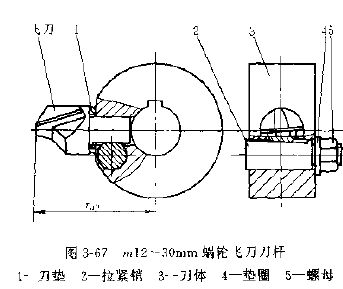 蝸輪飛刀的工作原理和切向蝸輪滾刀相同,差別僅在于飛刀的刀齒極少(在轉(zhuǎn)用刀桿上裝一把切刀,或幾把切刀)。飛刀加工效率低,刀具制造簡單,因而在單件、小批和大模數(shù)蝸輪生產(chǎn)中常有采用。