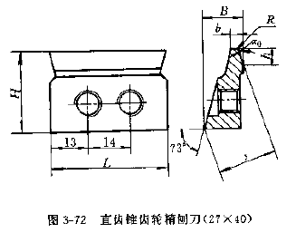表3-145  直齒錐齒輪精刨刀(27×40)基本尺寸