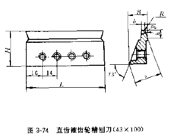 ZBJ41 006.1—88《直齒錐齒輪精刨刀基本型式和尺寸》中規(guī)定了模數(shù)0.3~20mm,基準(zhǔn)齒形角20°的四種類型的刨刀,其基本參數(shù)見圖3-72~75和表3-145~148。