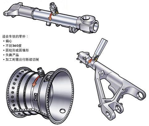 許多原本很難制造、需要在不同設(shè)置和機(jī)器上采用數(shù)種不同加工工序的零件,采用車(chē)銑工藝就能以高效率制造出來(lái)。當(dāng)零件形狀不對(duì)稱(chēng),或由于平面、型腔及障礙物等原因,零件表面的圓度達(dá)不到360°時(shí),這種工藝便顯示出其優(yōu)越性。