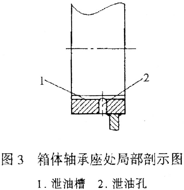 另外,在箱體的軸承座上開有泄油槽和泄油孔,使被封住的油可以很快地流回箱體內(nèi)。其結(jié)構(gòu)如圖3所示。