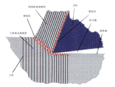 圖1顯示了前刀面區(qū)域待加工的材料是如何持續(xù)地塑性變形。剪切切屑的同時工件表面進(jìn)行了重組。刀具與切屑的摩擦以及切屑的剪切和剝離產(chǎn)生的熱量傳遞給了刀具或工件,或通過切屑散發(fā)。如果正確設(shè)置工藝過程,能將產(chǎn)生熱量的70%到80%傳遞給切屑。