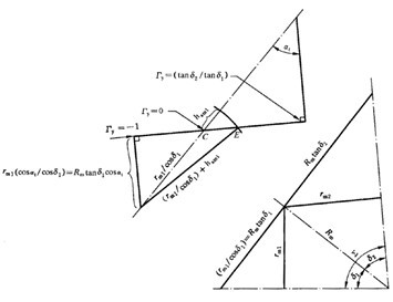 對于改寫的運(yùn)動學(xué)公式作如下假充5)(5)這些假設(shè)對曲率半徑作了適當(dāng)?shù)慕,但不包括用?dāng)量圓柱齒輪副代替錐齒輪。)[43],見圖A.2。