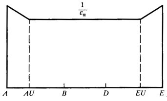 錐齒輪的邊疆接觸區(qū)為稍帶錐度的帶狀形。然而,在大多數(shù)情況,可較好地用平行的帶狀接觸區(qū)來近似,連同兩個切向速度的重合并在方向上與長軸垂直,尤其是當(dāng)曲率半徑的正確定值和赫茲接觸帶已知時,可直執(zhí)著使用權(quán)原來的公式(A.1)。為了方便起見,公式可以被改寫,即用直線來近似“8”字作用線,并且系數(shù)用錐齒輪的一般量來表達(dá)。