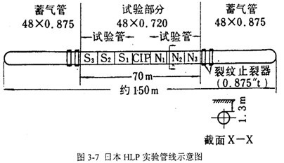 為了清楚地闡述在國外高韌性輸氣鋼管的全尺寸爆破實驗中觀測到的由材料韌性引起的裂紋持續(xù)減速現(xiàn)象,有必要先對全尺寸實驗的方法作較為細致的描述。本節(jié)的數(shù)據(jù)還會用作第四章小試樣實驗和本章的韌性減速計算的比較。