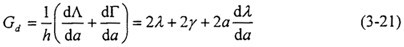 由(3-14)和(3-21)式,最終得到裂紋單側(cè)擴展的能量平衡方程: