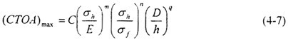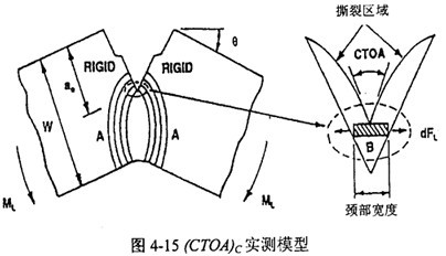 (CTOA)c可以通過攝像機(jī)從實(shí)物裂紋擴(kuò)展的照片上觀測得到,也可同CVN或DWTT實(shí)驗(yàn)建立聯(lián)系。Wilkowski分別建立了基于CVN和DWTT吸收功的(CTOA)c經(jīng)驗(yàn)算法,模型如圖4-15。另一種方法是通過測定作用于試件上的總功,從裂紋擴(kuò)展能的角度計(jì)算(CTOA)c。