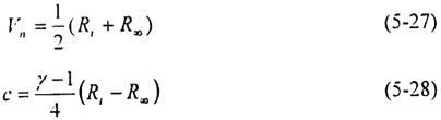 其中無反射邊界條件是根據(jù)特征線的方法來求出邊界上的參數(shù)值。根據(jù)一維完全氣體無粘非定常運動的方程組,在亞聲速的條件下由邊界上的入射波和出射波關(guān)系可以得到兩個Riemann不變量: