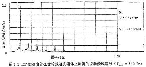 由于齒輪減速機是由齒輪、傳動軸和軸承等傳動部件及箱體、箱蓋等支撐部件紅成,傳動部件在發(fā)生故障時,故障振動頻率可覆蓋幾Hz至數(shù)kHz的范圍。因此,齒輪減速箱的振動信號不能采用位移和速度傳感器來拾取,而只能用加速度傳感器來拾取。通常加速度傳感器一般采用電荷輸出型的壓電加速度計,這種加速度計體積小、重量輕、價格便宜。但由于它要和電荷放大器配合使用,因而在傳感器與阻抗變換放大器之間就有一段高阻抗信號輸送的聯(lián)接,故降低了系統(tǒng)的低頻性能、分辨率、抗干擾能力和穩(wěn)定性等方面水平。為了改變這種現(xiàn)象,便發(fā)展了集成形式的壓電傳感器-即ICP加速度計,它將阻抗變換放大器封裝在傳感器的剛性殼體內(nèi)。