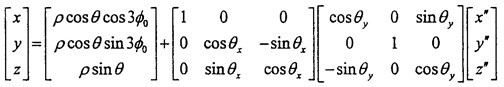 由式(3-6)可知|θy|<θ,|θx|<θ一般來說θ值非常小,則θy和θx則更小。到此方向余弦矩陣[Coo″]的所有項均可求出。其具體的形式如下(為簡化書寫將θy作為已知參數(shù)代入):