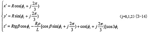 3.2.4.3.2 小桿(球面中心P)相對于三叉桿軸頸的運(yùn)動小桿的球面中心P在動坐標(biāo)系O″X″Y″Z″中的參數(shù)方程為: