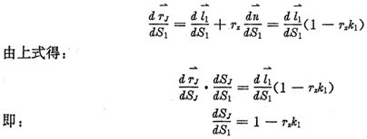 下面再推導(dǎo)一下齒廓及其法向等距線的相對曲率關(guān)系。設(shè)HJ的孤長參數(shù)為SJ,相對曲率為kJ,而H1的孤長參數(shù)為S1,相對曲率為k1,由微分幾何可得: