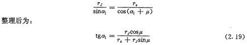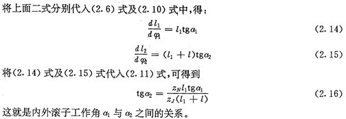將它們代入(2.19)式,便得到(2.37)式?梢娗懊嫠玫降亩嗉げㄓ嬎愎綄げㄆ鳛槠膱A的單激波也同樣適用。在單激波情況下,內(nèi)外滾子工作角之間的關(guān)系簡化成了: