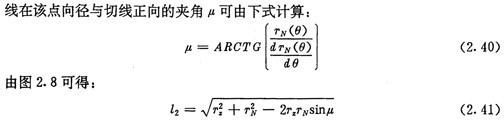 同樣,由微分幾何,曲線H2的向徑與切線正方向的夾角μ2可由下式計算: