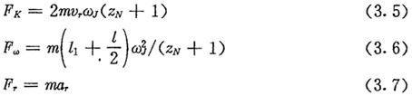 由于考慮了慣性力,所以力Fc 不通過交點Q,lc也是一個未知數(shù)。若根據(jù)輸入功率確定出FJ,則方程組(3.8)只剩下FN、FC及lc三個未知數(shù)了。