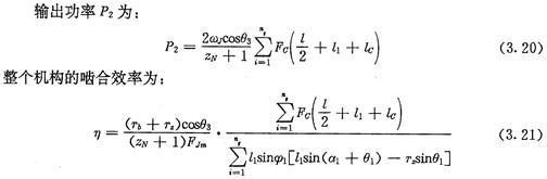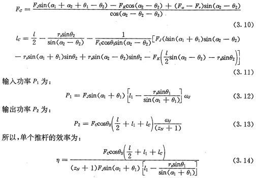 計算時,先根據(jù)輸入功率P1及轉速ωJ由(3.19)式計算出FJm,然后對每一工作推桿由式(3.17)計算出FJi,由式(3.10)式及式(3.11)計算出Fci及lci,最后代入式(3.21)計算出效率η。