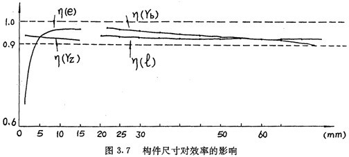 為了判斷推桿減速器構件尺寸對其效率的影響,對3TWY7.5-12推桿減速器,選用同一組摩擦系數(shù),而改變某一基本構件尺寸,并假定傳動圈尺寸隨之改變以確保受力交點Q落在傳動圈所在環(huán)內,計算其嚙合效率,結果如圖3.7所示。