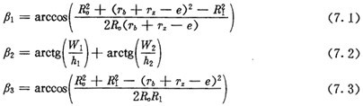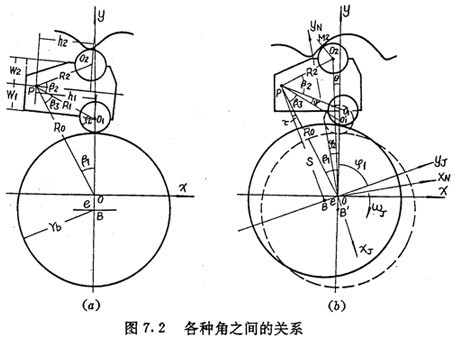 上式中h1、h2、W1和W2都是擺動中心與內(nèi)外滾子中心相對位置的參數(shù),見圖7.2(a)。