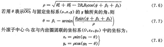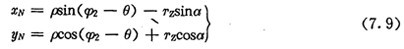 上式中,a為內(nèi)齒圈齒廓在M2點的法線與yN軸的夾角,它等于外滾子中心軌跡在O2點的切線正向與xN軸正向的夾角(圖7.3)