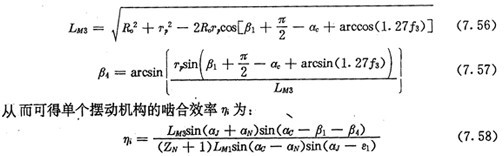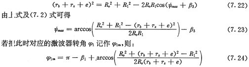 在前面討論的推桿減速器中,推桿的工作區(qū)域角及非工作區(qū)域角是相等的,在內(nèi)斷圈齒廓既不進行修形又無頂切的理論情況下,工作推桿數(shù)為推桿總數(shù)的一半。而在擺桿減速器中,擺動機構(gòu)的工作區(qū)域角與非工作區(qū)域角并不相等,其工作區(qū),或角由式(7.31)及式(7.24)確定,因而即使在內(nèi)齒圈齒廓既不進行修形又無頂切,自理論情況下,工作擺動機構(gòu)數(shù)目也不再是擺動機構(gòu)總數(shù)的一半。根據(jù)激波器轉(zhuǎn)向的不同,工作擺動機構(gòu)數(shù)目可能會超過總數(shù)的一半,也可能會少于總數(shù)的一半。