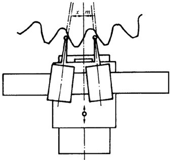 取在直徑上對(duì)置的同側(cè)位置的齒面,從其螺旋線圖上可以獲得適用的平均值,然而,如螺旋線傾斜偏差沿齒輪圓周變化時(shí),則必須至少取三個(gè)均布齒面的跡線。否則其偏差不一定能被發(fā)現(xiàn)。