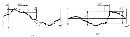 切向綜合總偏差(Fi′)是指一個(gè)齒距位移間的切向綜合偏差。