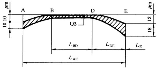輪齒鼓度Cβ的評(píng)定步驟,與7.8中闡述的齒廓凸度Cα是類似的。