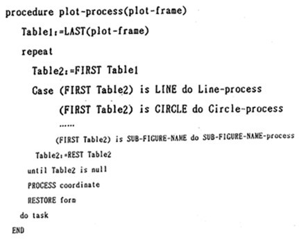 計算機各種語言以及各種繪圖軟件包各具風(fēng)格,繪圖指令各種各樣,但萬變不離其宗。因而就有可能形成一種通用的機制。作者在這里研制了一種較通用的繪圖指令生成器,其原理是通過分析各種繪圖軟件包的各種繪圖指令,在盡可能廣泛的情況下,使繪圖指令生成器的內(nèi)部,包含各種繪圖指令。同時,繪圖指令生成器也可以通過編輯或輸入的方法進一步擴充繪圖指令?梢酝ㄟ^二種方式改變輸出繪圖文件的格式:一是通過編輯修改輸出語句格式;二是通過教導(dǎo)式的學(xué)習(xí)方法改變繪圖文件的物出格式,如下過程: