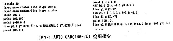 現(xiàn)在,各種計算機語言中,如PASCAL, FORTRAN, BASIC等均帶有圖語句。有諸如直線,圓弧,圓等基本指令(人工智能語言GCLISP versionl.0版因為沒有三角等計算函數(shù)的功能,所以沒有圓弧、圓等指令)。相應(yīng)的,各種計算機輔助繪圖軟件包,如IMB-PC上常用的AUTO-CAD, APOLLO工作站上使用的GPR均含有繪圖的基本單元,如繪制直線、點、中心線、折線、圓、圓弧等墓本圖形命令,進一步的如APOLLO的S7K繪圖軟件包的三維實體造型等功能,其基本圖素如圓柱體、錐體、球體、立方體等;并都具有圖形平移、旋轉(zhuǎn)、縮小、放大等功能。但是,各繪圖軟件包一般都自成體系,比較難以通用。作者通過對這些軟件的分析,用LlSP編寫了一個比較通用的二維繪圖軟件包,在使用時,只要按所使用的軟件的相應(yīng)格式填寫,就可輸出相應(yīng)的繪圖命令。分別介紹如下:
